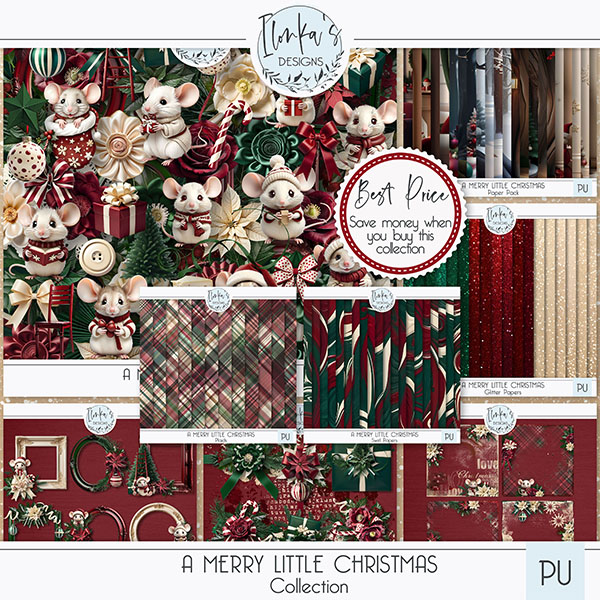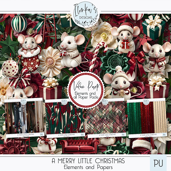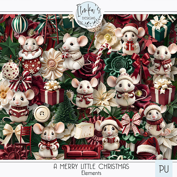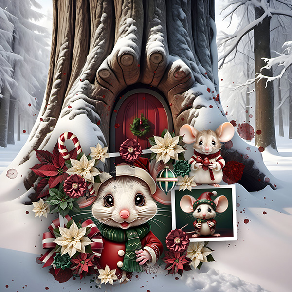 Welcome to A Merry Little Christmas, a charming digital scrapbooking collection featuring adorable little mice living inside a cozy tree trunk. With a warm palette of dark red, deep Christmas green, and soft cream, this collection captures gentle holiday cheer and the sweetness of small woodland moments. Perfect for adding a touch of whimsy and warmth to your seasonal projects.
