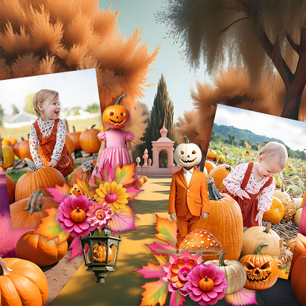 Discover the whimsical charm of autumn in “Pumpkin Land” — a vibrant digital scrapbooking collection where creativity meets seasonal magic. This enchanting set features delightful children with pumpkin heads, cozy pumpkin-shaped homes, and scenic papers inspired by parks, countryside paths, and charming pumpkin-filled streets.