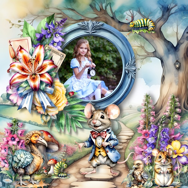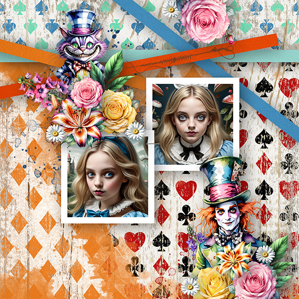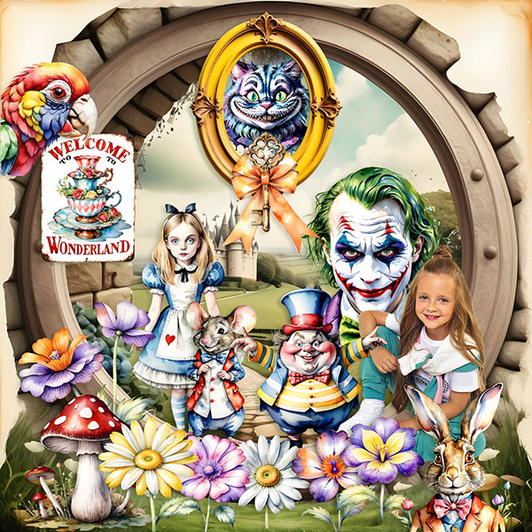 Step through the looking glass and tumble into a world where imagination runs wild. “Wonderland” is a vibrant digital scrapbooking collection inspired by the timeless magic of Alice in Wonderland, featuring all your favorite characters.